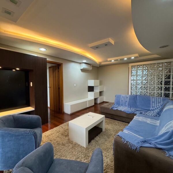 Apartamento amplo com 02 dormitórios (sendo 01 suíte), sala de estar e jantar, cozinha, área de serviço, sacada fechada com churrasqueira e 02 vagas de garagem.